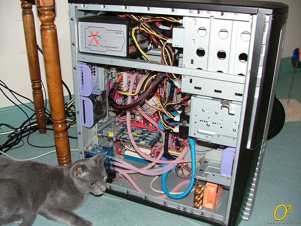 Now with the PSU wires tucked away things look a little better. Don't make fun of my case clutter :) My cat, Smokey, also likes the PSU's wires out.