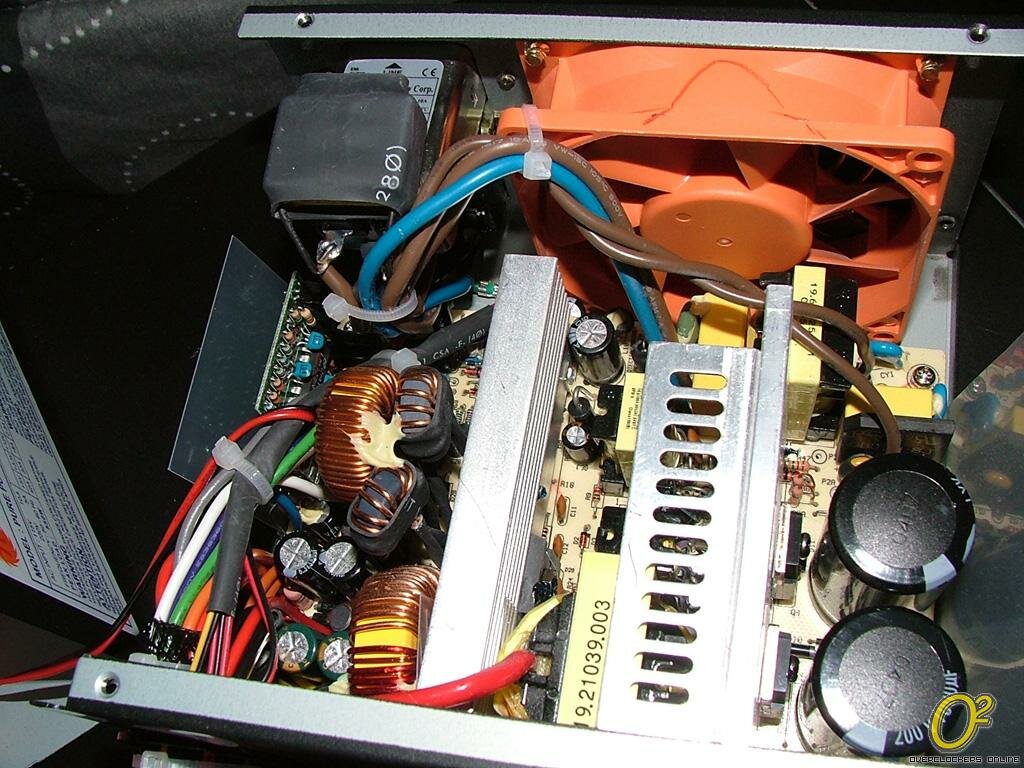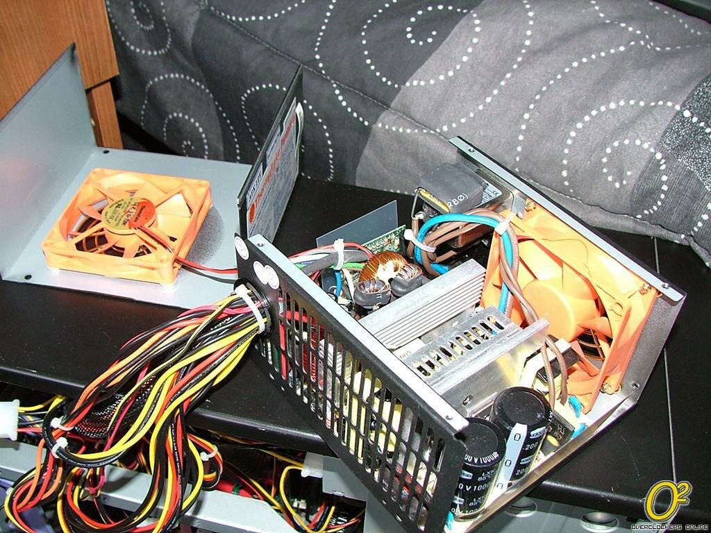 Here is a little better look inside. You can see the two fans for this power supply. One of which is a normal 80mm that is mounted inside the PSU, the other is a slimmer 80mm to fit on the inside of the top without chopping your wires as it spins :) .