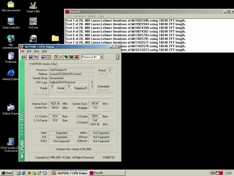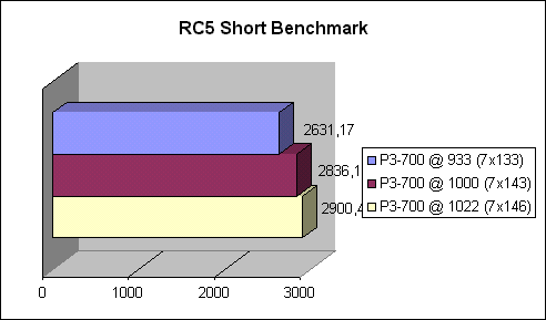 The next step would be to find out how high we can push the CPU above the 1GHz speedmark! After doing some experimenting with the CPU core voltage and FSB speed, I found out that the CPU and the IWill BD133 were perfectly stable @ 1022MHz or 1.02GHz (1.95v). To be absolutely sure of this, I ran RC5 together with Prime95 for a whole day and guess what … stable as rock! Check out the screenshot (7x146MHz) :