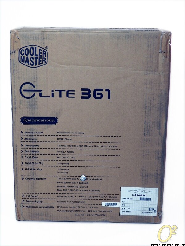 Nov 14th, 2012 | By ChrisThe Elite 361 comes in a basic, brown, corrugated box. Measuring at 21x16x8″ (l x h x w), it’s significantly smaller than the typical chassis that can house an ATX motherboard. The face of the box shows a simple, artistic view of the Elite, and the reverse goes into detail about the specifications.