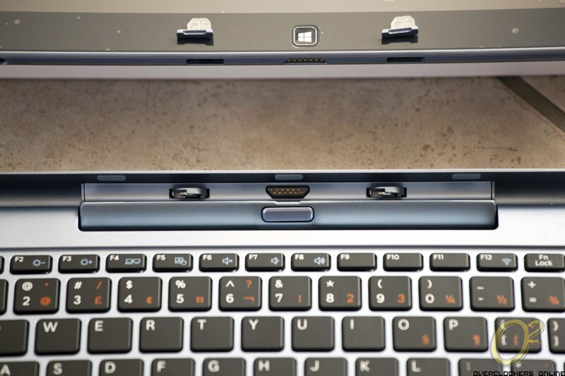 As I mentioned early, the tablet has two hidden hinge hooks that mount on to the hinge of the keyboard. Once you remove the hinge covers the docking assembly is ridiculously simple. All you need to so is line up the contacts and push the two together. To make it even easier, the Windows Home button on the tablet is located in-line with the contacts so you don’t have to look at the bottom edge to see where the contacts are. Simply grab the two pieces and push them together. At first I didn’t feel too comfortable carrying the assembly together by the screen and insisted on holding onto the bottom of the keyboard but after a while I would happily grab the assembly by the screen and walk up a flight of stairs to my office.