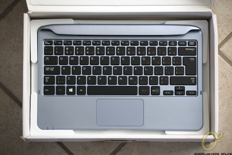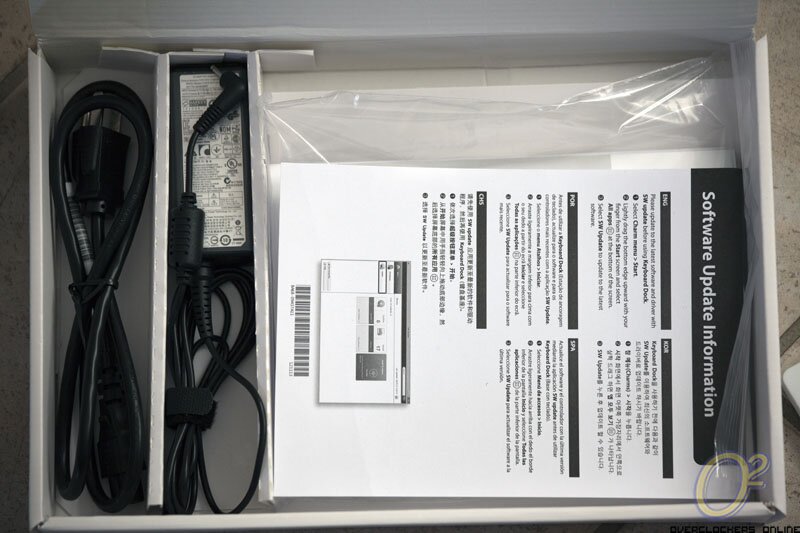 Once the box is opened, the first thing you see is the tablet. Lifting the tablet out you find the keyboard and beneath that is the power cord and a few instruction pamphlets.