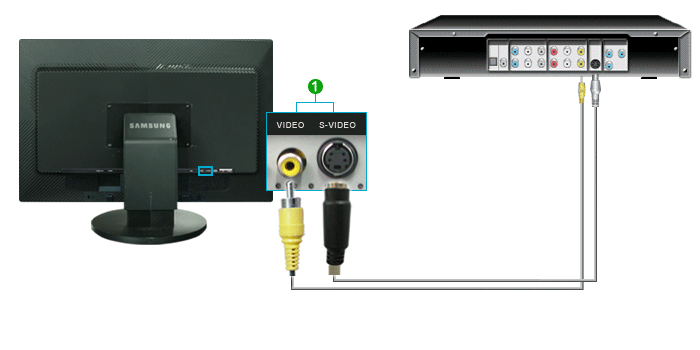 Input devices such as DVD, VCR or Camcorder are connected to the RCA or S-VIDEO terminal of the monitor using the RCA or S-Video cable.