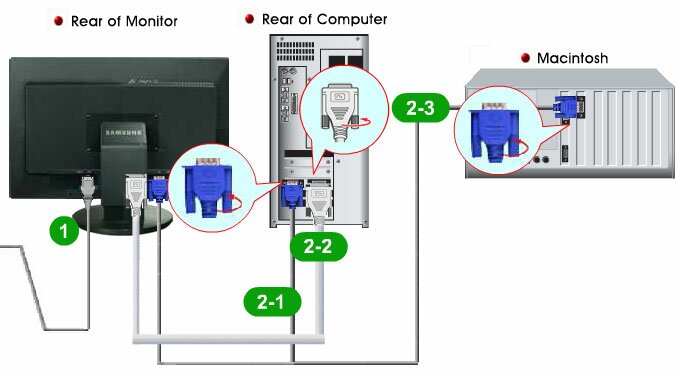 - Connect the signal cable to the 15-pin, RGB port on the back of your monitor.