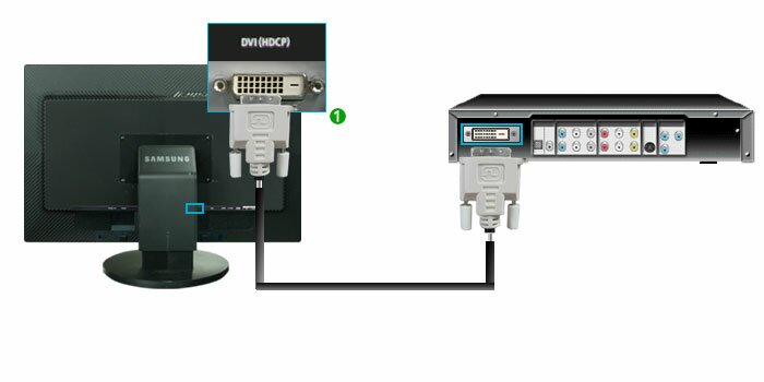 - Connect the DVI cable to the DVI(HDCP) port on the back of your monitor.