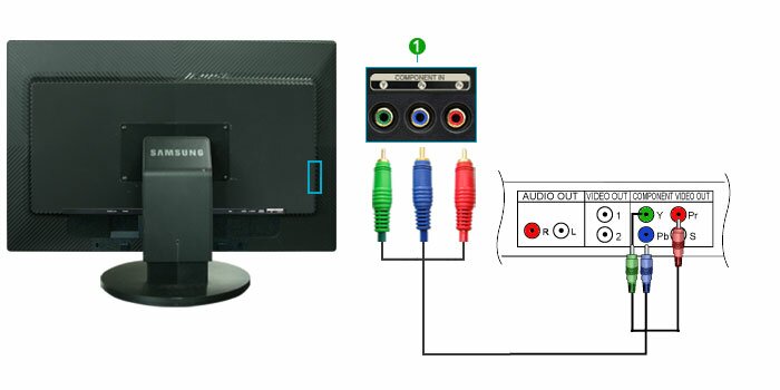 Connect the VIDEO OUT port of the DVD / DTV Set-Top Box to the PR, PB, Y input ports using a component video cable (PR, PB, Y).