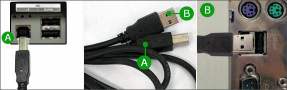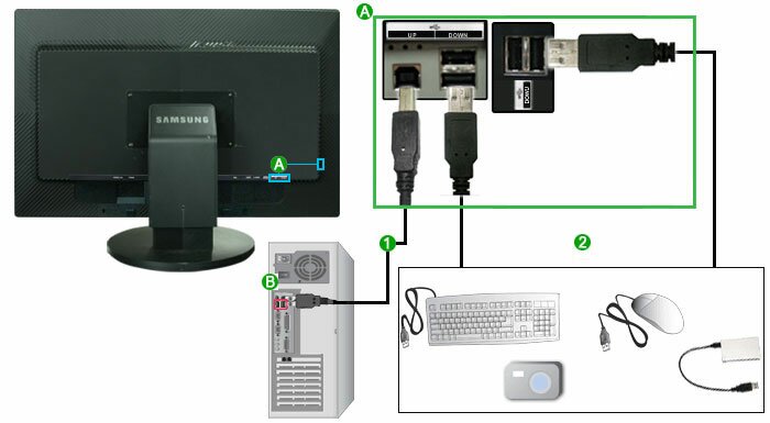 Connect the   DOWN port of the USB monitor and a USB device with the USB cable. |