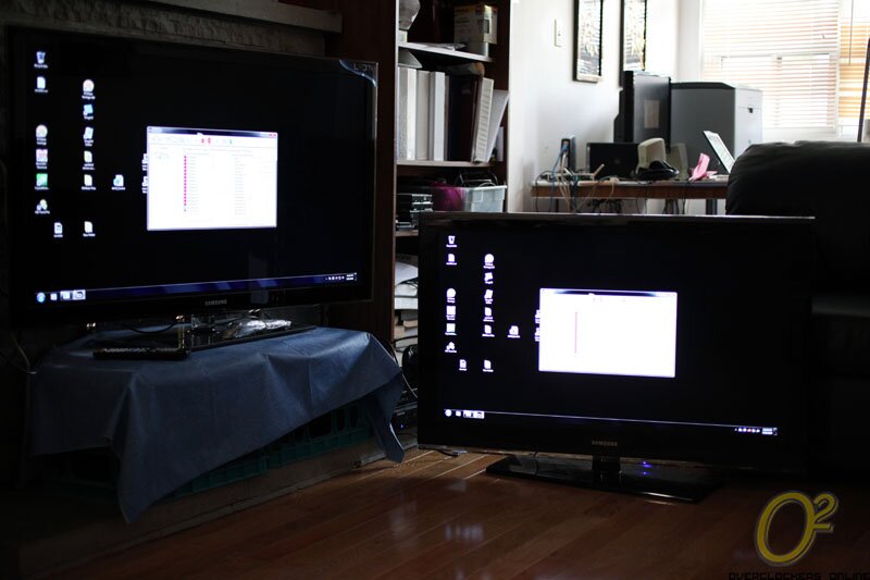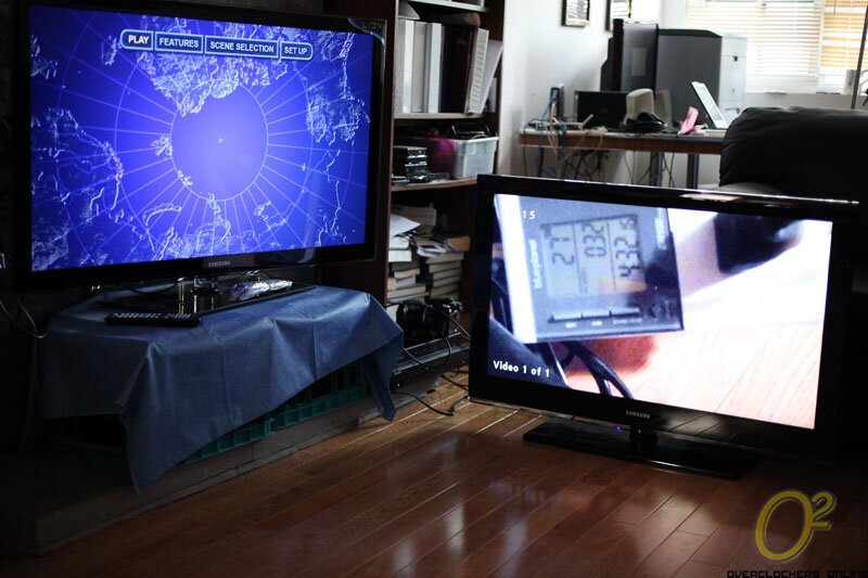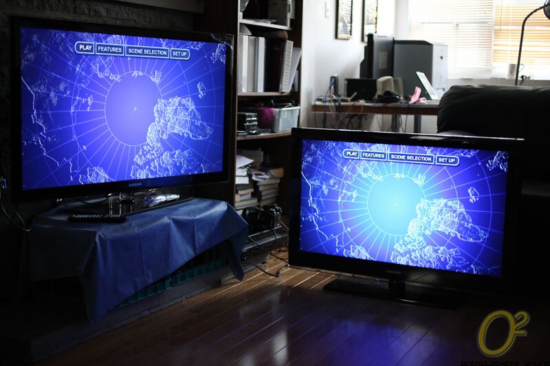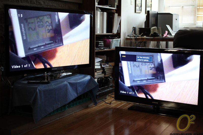 For my test purposes I have 2 HDMI displays in the form of two 46″ Samsung TVs and I have 4 HDMI inputs in the form of a Blu-ray player, my benchmarking machine, my Flip Video MinoHD and my Canon 50D DSLR camera. Bear with me as I haven’t had a chance to permanently install the VM0404H so the cables are a mess.